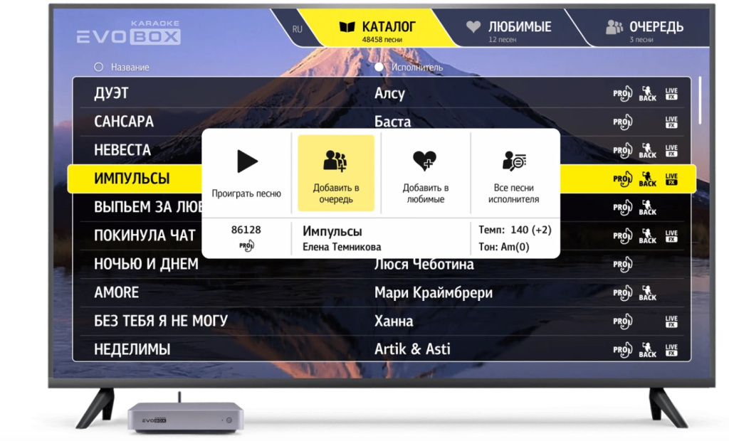 • Обширный репертуар. Более 20 000 песен в высоком качестве уже в комплекте. Регулярное обновление библиотеки позволяет всегда оставаться в тренде музыкальных хитов. Есть возможность покупать песни поштучно.