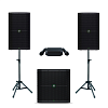 В состав комплекта входит пара активных акустических систем MACKIE THUMP212 с пиковой мощностью 1400 Вт каждая. Главная особенность серии THUMP, помимо чрезвычайно прочного корпуса, высокой мощности и качественного звучания во всём диапазоне частот, — встроенный подавитель обратной связи. Он особенно полезен при работе с микрофонами в непосредственной близости от колонок: функция позволяет практически полностью устранить эффект «заводки» микрофонов с резкими неприятными звуками, которые могут повредить акустику.