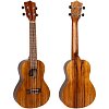 Эта укулеле сделана из индонезийского тика. Помимо того, что это просто невероятно красивое дерево с полосатой текстурой, оно обладает потрясающим объемным и ярким звучанием. Накладка на гриф - железное дерево (ironwood), сам гриф выполнен из меранти - очень красивого и вместе с тем прочного дерева, похожего на махагони.