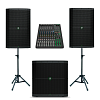 Готовый комплект звукоусиления на базе оборудования MACKIE: две активные акустические системы MACKIE THUMP215, сабвуфер THUMP 118S, микшерный пульт MACKIE ProFX12v3+, напольные стойки и комплект коммутационных кабелей. Оптимален для стационарных инсталляций и выездных мероприятий в барах, ресторанах, караоке-клубах, на репетиционных площадках и любых других объектах, где важно добиться высококачественного звучания.
